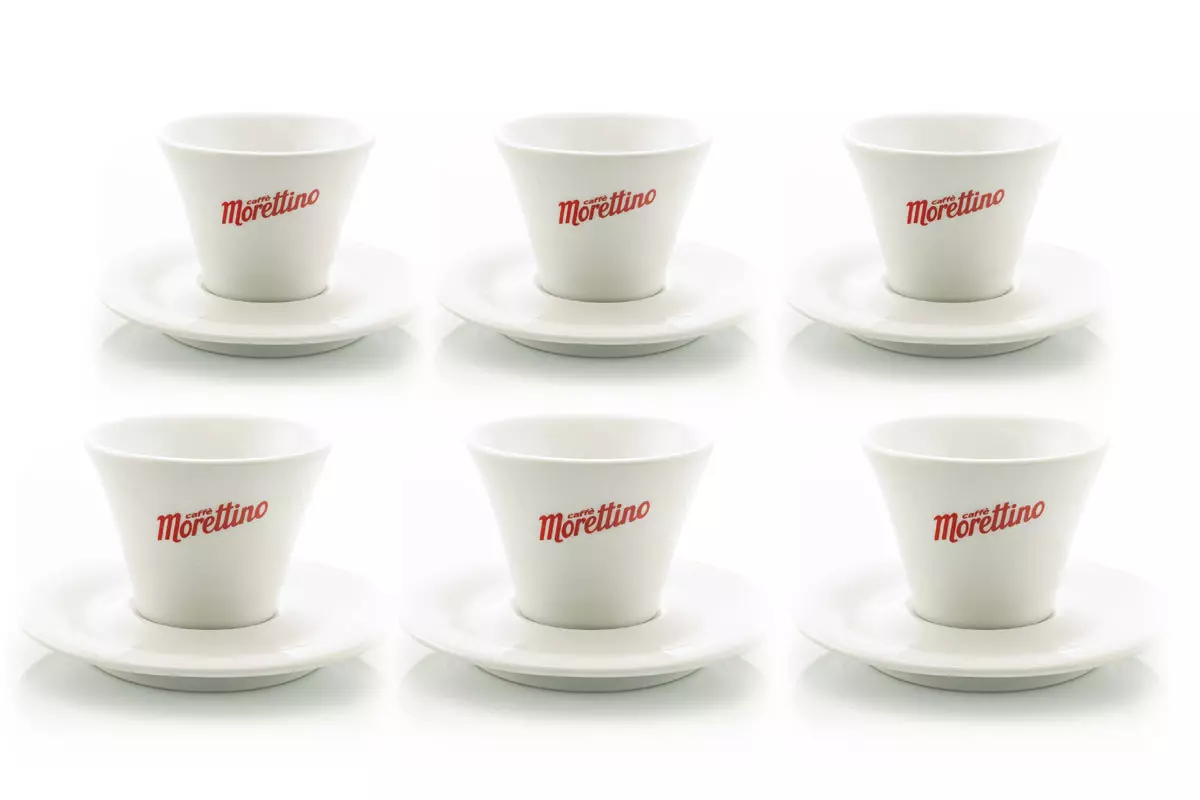 Set of 6 Cappuccino white porcelain cups with Morettino logo