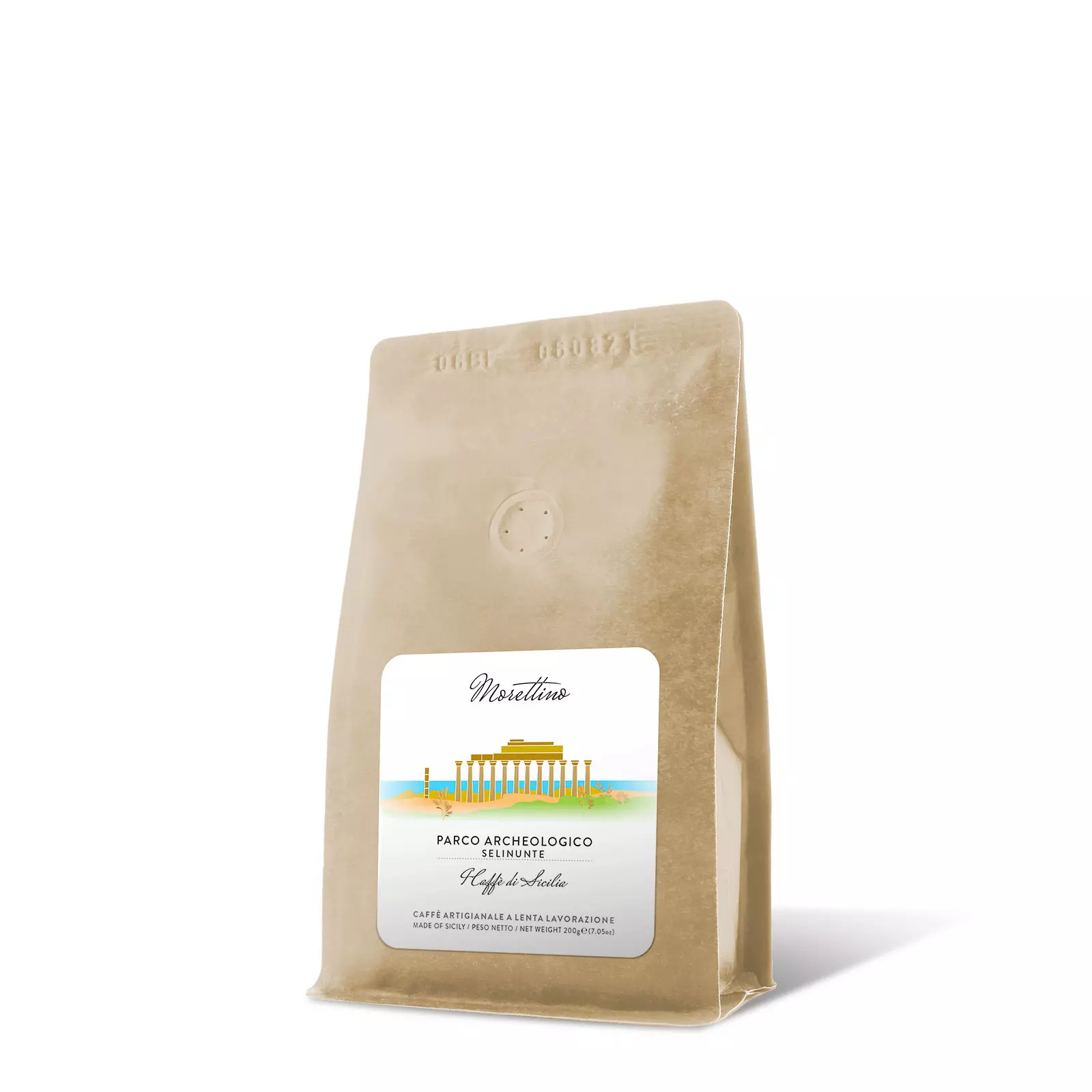 Inside each package there is a special blend of freshly ground coffee, roasted by Morettino master roasters to recreate the typical aromas of the area nestled among the sand dunes where sea lilies and ears of wheat grow wild.