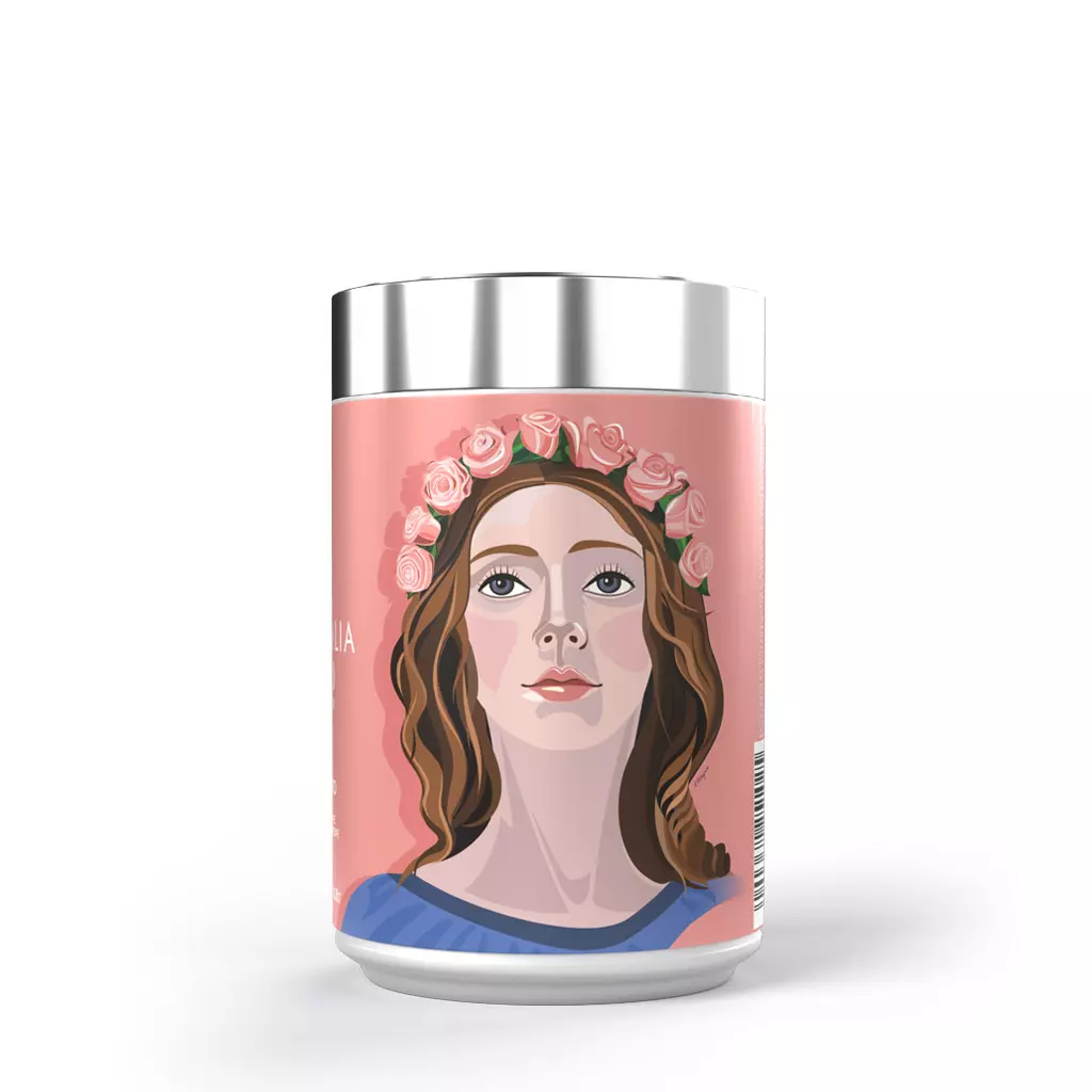 Il blend Rosalia #400+1 è racchiuso all’interno di una preziosa latta da 250g, creata da Roberta Pellegrino, designer palermitana.